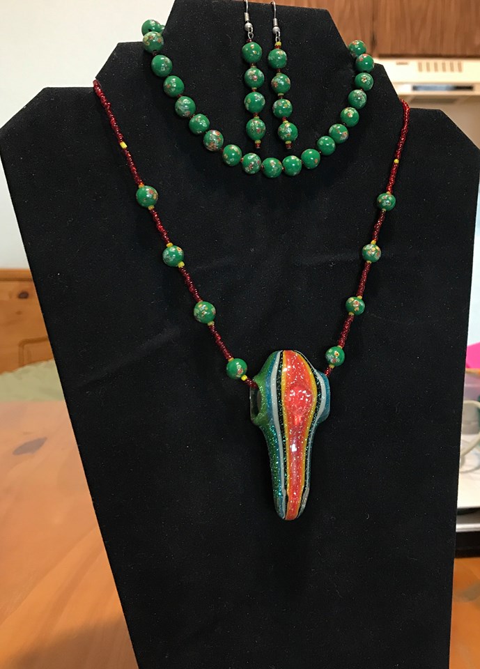 Jewelry crafted with vintage beads, unique findings, and borosilicate glass pendants.