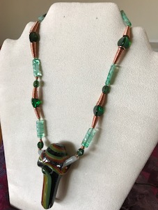 Jewelry crafted with vintage beads, unique findings, and borosilicate glass pendants.